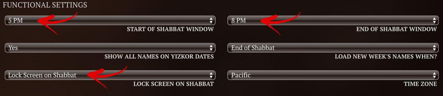 Navigate to “Settings > Yahrzeit Wall” and find the “Functional Settings” menu.